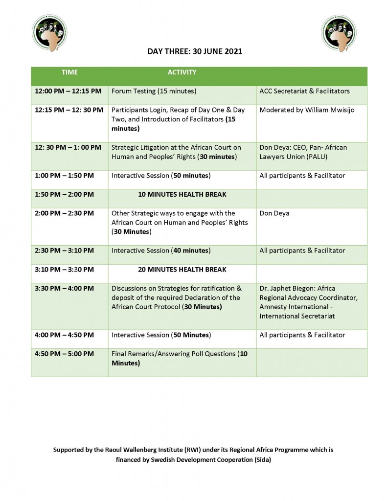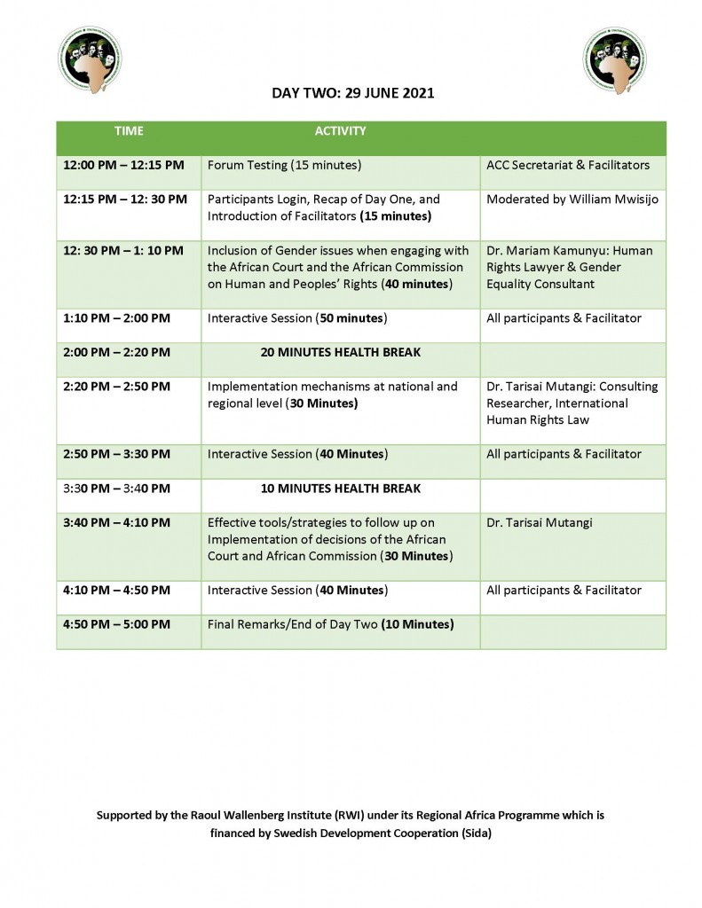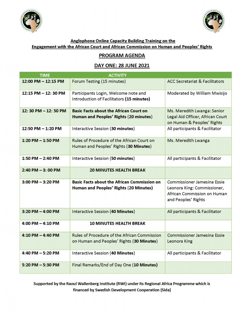 PROGRAM AGENDA : Anglophone Online Capacity Building Training on the Engagement with the African Court and African Commission on Human and Peoples’ Rights